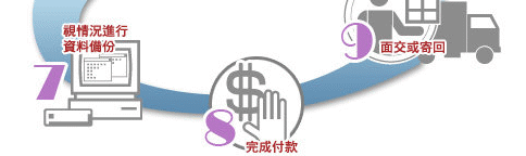 親自取回者當面付清取回, 郵寄者匯款,轉帳後當日快遞寄回硬碟及資料. |