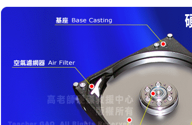 4. 線圈組, 控制磁頭定位, 內有高密度磁鐵, 建議手錶類物品不要太靠近.